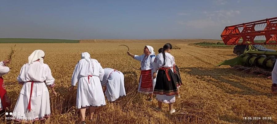 Председателят на кооперацията в селото допълва във Facebook: "Със сърпове, паламарки и жетварски песни бяха отрязани първите житни класове, с надежда за една успешна жътва и богата реколта".