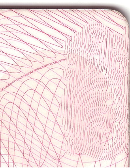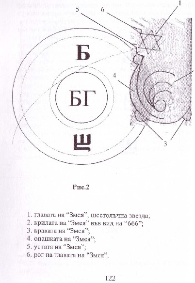 Ако се вгледаме в лазерния печат ще видим, че окръжностите (които сме изобразили на рис.1 с пунктирани линии, обозначени с цифра 1) са всъщност непрекъснати надписи Република България. Става ясно, че лазерният печат символизира държавата. Отдясно на печата на държавата е изобразен „Змей“.Главата на звяра е във вид на шестолъчна звезда. От устата на „Звяра“ излиза линия (обозначена на рис.1 с цифра 2) и представлява всъщност непрекъснат надпис – „ЛИЧНА КАРТА IDENTITY CARD“. Краят на опашката на звяра се намира до отворената му част…