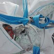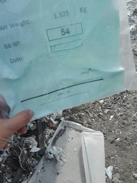 На място те констатираха тонове отпадъци, сред които строителни, пластмасови и гумени парчета, битови и метални. Не е ясно колко от тях са опасни, обясни екологът на община Садово Атанас Иванов. Част от боклука(пластмасови стърготини), е опакован в чували с надписи Мade in Spain. Към тях са прикрепени бланки, които показват, че всеки чувал тежи 1325 кг. На мястото има поне 20-30 чувала.Част от тях са изсипани по брега на реката, на стара площадка за баластра.