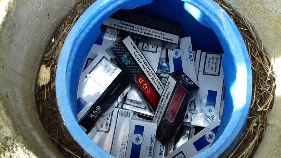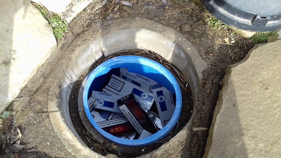 Откриха цигари в пластмасови бидони, вкопани в земята