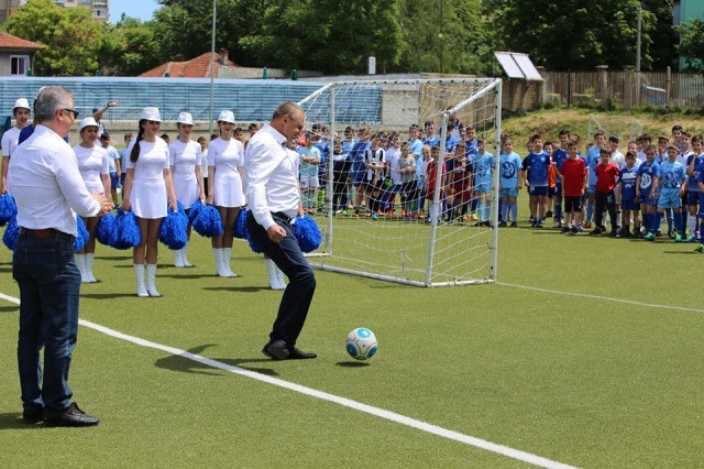 В края на официалната церемония Пламен Нунев и инж. Наков дадоха символичен старт на първата футболна среща.