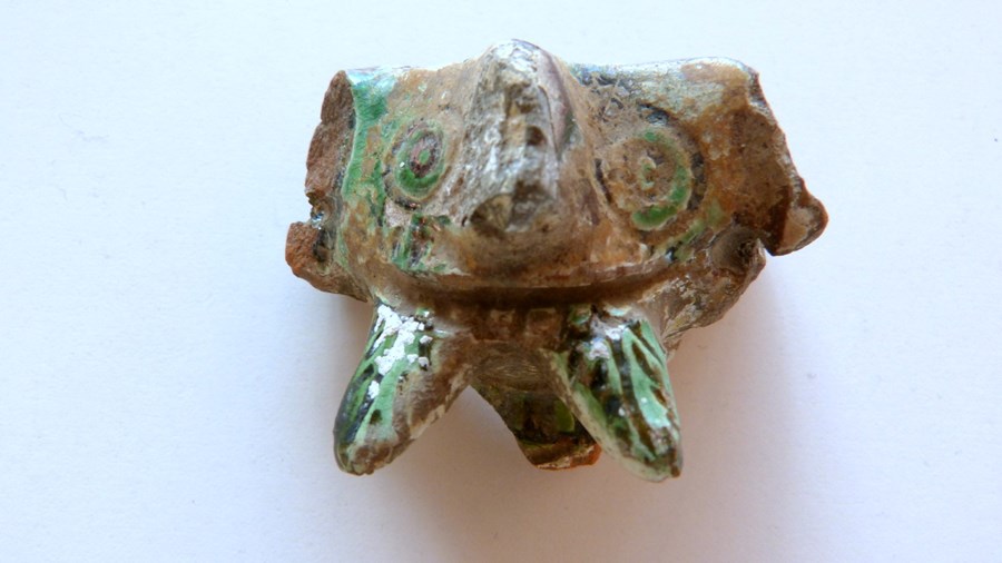 Сред многобройните керамични находки особен интерес предизвиква фрагмент от устието на съд, оформен като лице на същество с митичен произход. Този артефакт подчертава богатата духовна култура на средновековните обитатели на Червен.