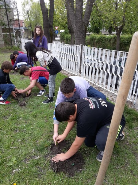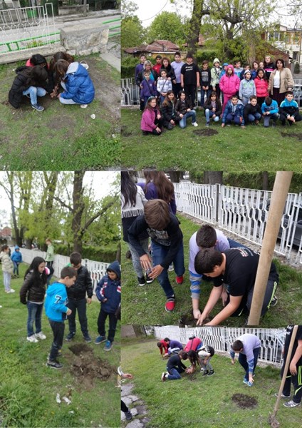 В чест на Деня на Земята ученици посадиха иглолистни и широколистни дръвчета в двора на училището. Те бяха предоставени на учениците от 3б клас с класен ръководител М. Камбурова, в следствие на тяхното участие в Национална залесителна кампания - пролет 2017. Така децата се включиха в инициативата „От хората за хората“, която има за цел да засажда нови гори и дървета за България!