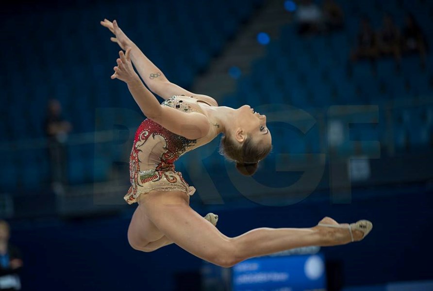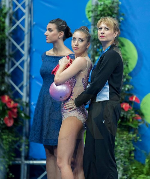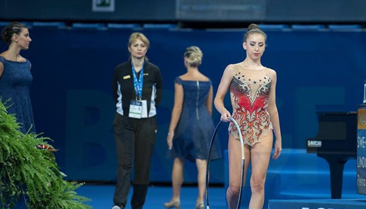 Нашето момиче е дебютант на такъв форум и изигра стабилно и двете си съчетания - (обръч - 16.200 и топка 16.700).