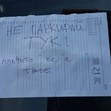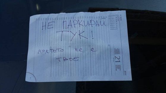 Обяснението? Паркирал на чуждо място. Поне това се разбира от оставената от злосторника бележка. От снимките обаче не се виждат каквито и да е било обозначени паркоместа, така че най-вероятно става дума за място пред сградата, което някой просто си е набелязал като свое.