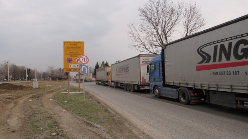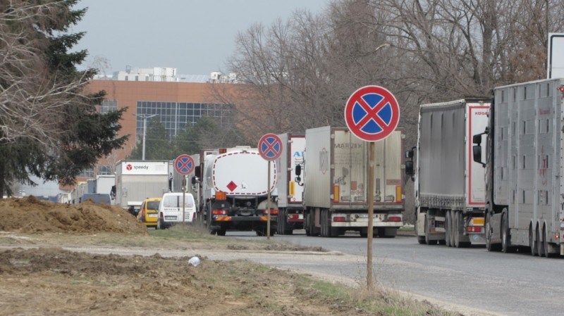 Заради големия брой тирове опашката стигна и до булевард “България“, а водачите недоволстваха, че проблемът не се решава въпреки обещанията на институциите.