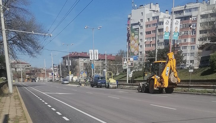 Русенец публикува снимка от наскоро ремонтирания булевард, на която отново се виждат тежки строителни машини