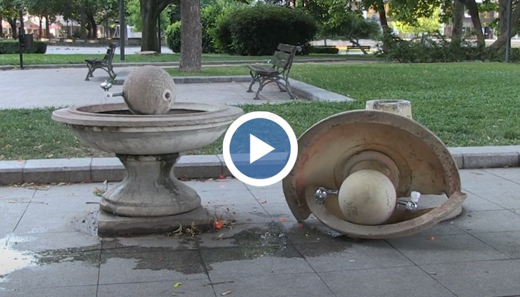 Чешмичката пред хотел „Дунав“ в Градската градина е потрошена, само месец и половина, след като деца я счупиха и общината отново я ремонтира.