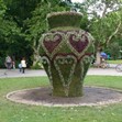 Използвани са над 20 000 стръка растения за умело вплетените сърца, разказаха жените от дружеството. Зелено, кафяво и лилаво са основните цветове, но са добавени и стръкове сиво.
