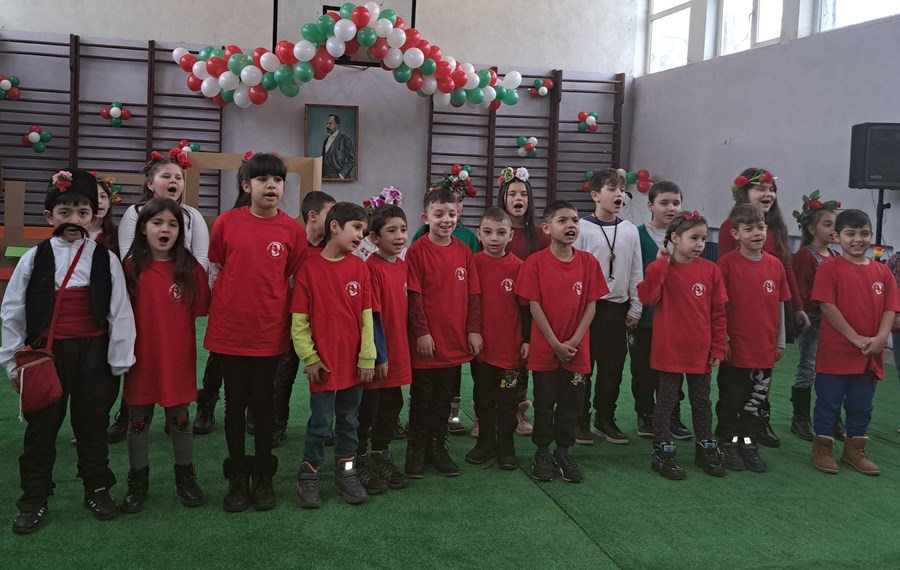 Ученици от III и IV клас рецитираха малко известни стихове на Щастливеца и пяха песни.