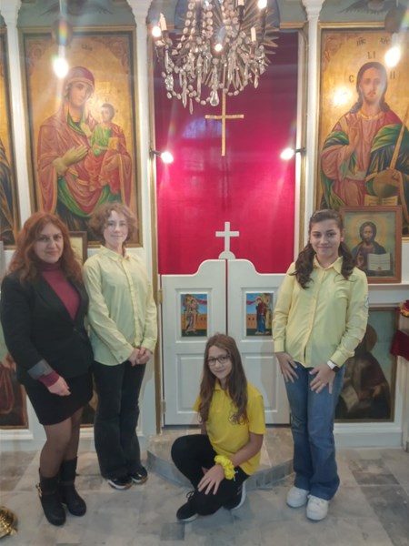 Йоана Герасимова и Сара Христова, които развиват своите творчески заложби в групата "Приложни изкуства", създадоха впечатляваща творба - сцената "Благовещение" върху Царските двери на иконостаса. Под вещото ръководство на тяхната преподавателка по изобразително изкуство Моника Каламерова, младите художнички допринесоха за възстановяването на храма, който отвори врати на 9 ноември 2024 година.