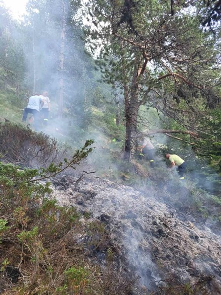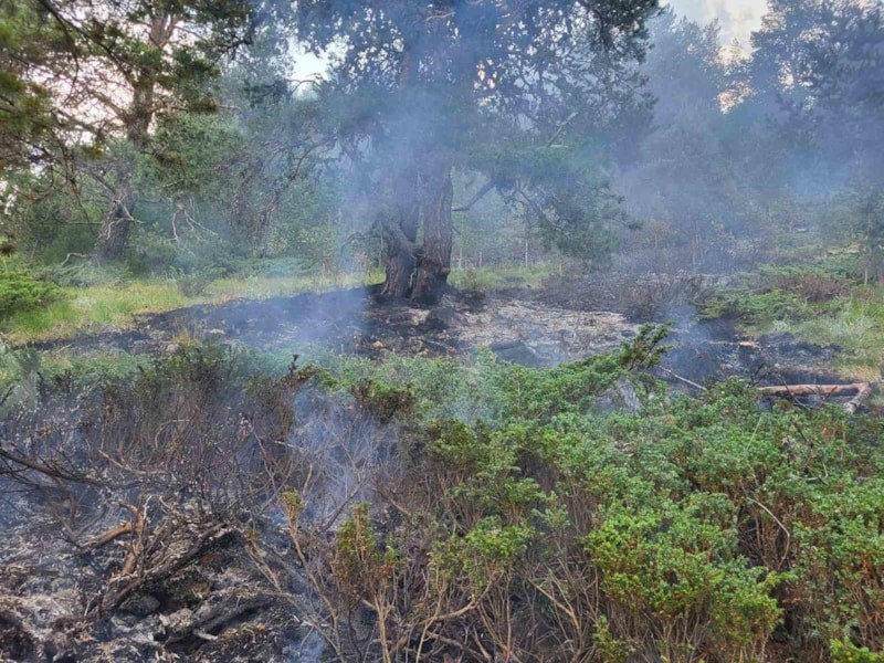 Припомняме ви, че в събота, на 3 август, в 17:00 часа, Дирекция "Национален парк Пирин" получава сигнал за пожар под връх Шаралия. Двама паркови служители от парков участък „Синаница“ незабавно се отправят към мястото и установяват, че гори рядка борова гора и горска постилка на северозападния склон на върха. Труднопроходимият и стръмен терен е достъпен само след двучасов пешеходен преход.