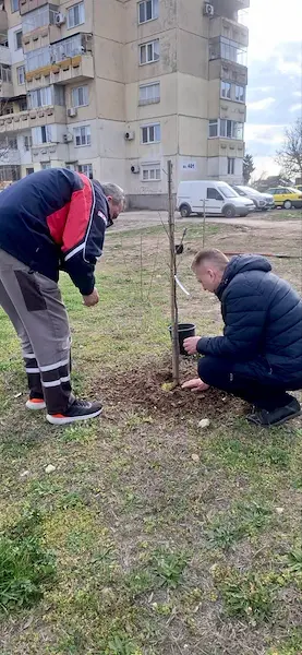 В засаждането на младите дръвчета се включи лично управителят на "Общински пазари" Кунчо Кунчев. Лировото дърво е специално избрано за облагородяването на терена заради величествената си корона, бързия растеж и пищната зеленина, която ще осигурява широка сянка през горещите летни месеци.