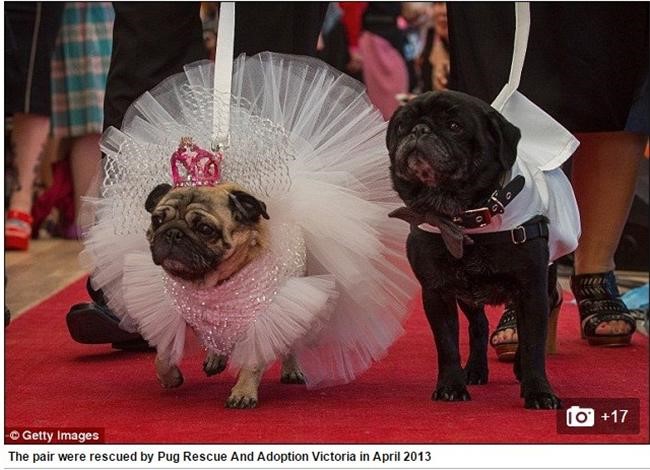 Ожениха два мопса в Австралия. Булката беше в сватбена рокля на стойност 2000 австралийски долара, пише в. "Дейли мейл".