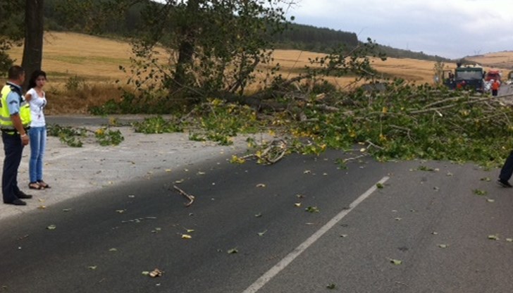 Силните пориви на вятъра са начупили клони по основния път Русе - Разград, съобщава Радио „Фокус“