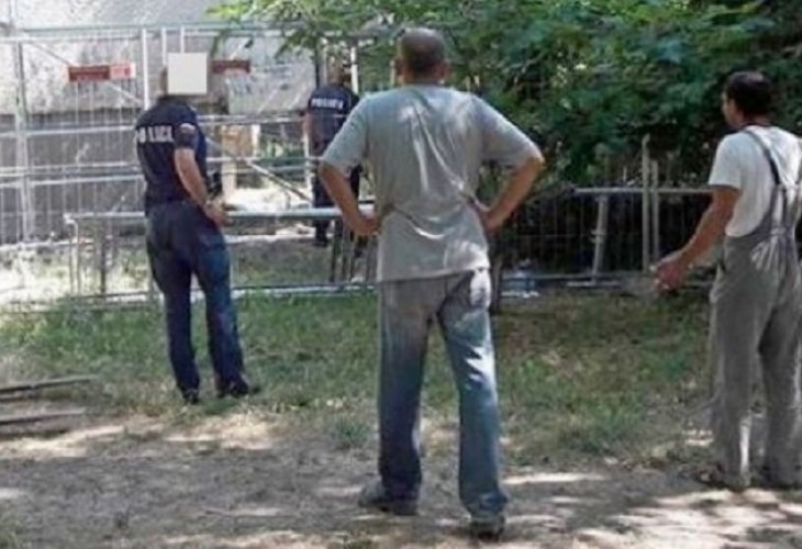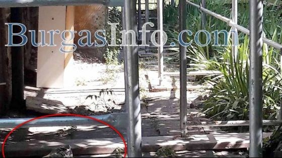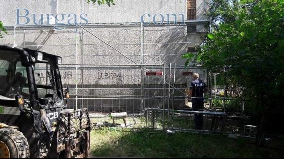 Полиция оглежда мястото. Работникът е паднал от скелето, което стига до втория етаж, тъй като в момента го издигали. Височината не е била голяма, но удряйки се в плочките, младият мъж си е глътнал езика.