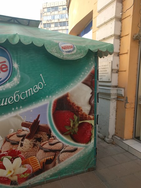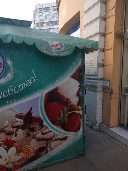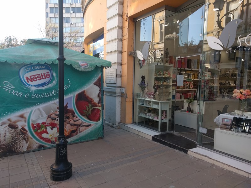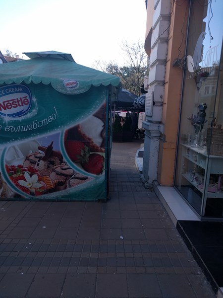 Как община Русе е разрешила да бъде поставена будка за сладолед на половин метър от паметник на културата, закриваща и витрините на два магазина.