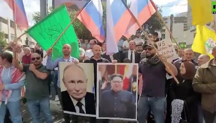 Палестинците носят портрети на Путин и Ким по време на демонстрации