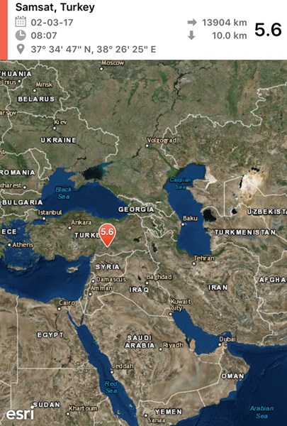 Епицентърът на труса е на 2 километра североизточно от град Самсат. Дълбочината му е била на 11 километра.