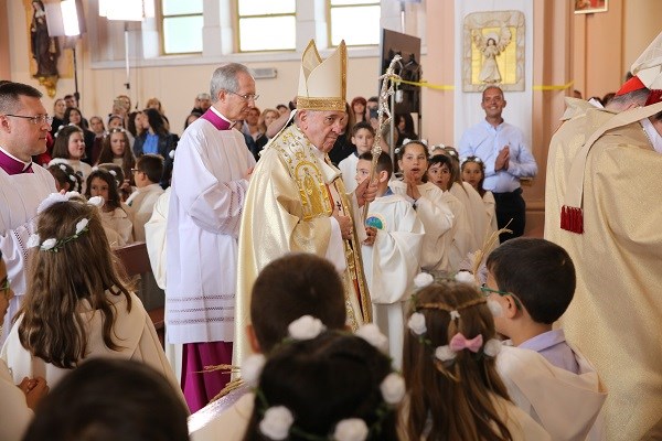Всички деца, които приеха Христос за първи път, бяха облечени в бели дрехи, символизиращи чистота и празничност. „Приеми, Господе Иисусе, нашите молитви и изпълвай живота ни със своята любов“, заяви в свое кратко молитвено обръщение папа Франциск.
