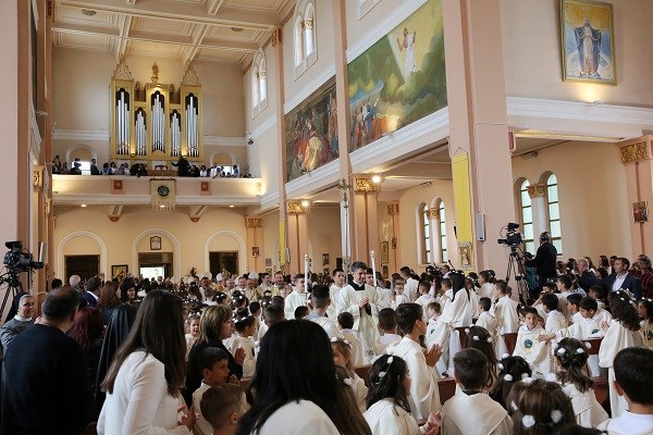 Папа Франциск даде първо причастие на 242 деца в Раковски.