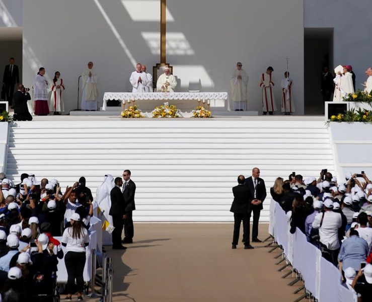 Франциск е първият глава на Римокатолическата църква, който изнася служба на Арабския полуостров.
