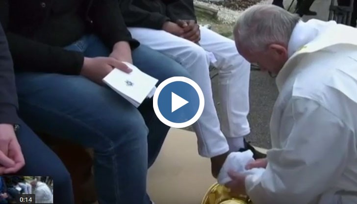 Папа Франциск изми и целуна краката на мюсюлмански, индуистки, православни и католически бежанци в знак на братство и приветствие с добре дошли.
