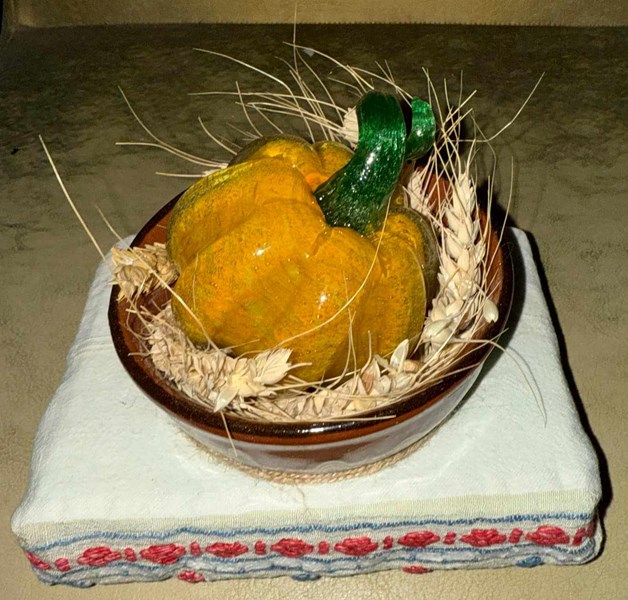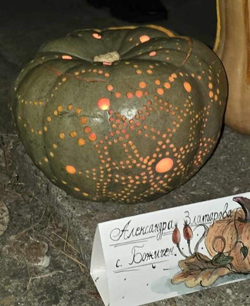 Читалището в село Мечка подари на Читалището в село Божичен интерпретация на мома в народна носия върху тиква. "Благодарим за старанието и за интересната идея!", отговориха божичани.