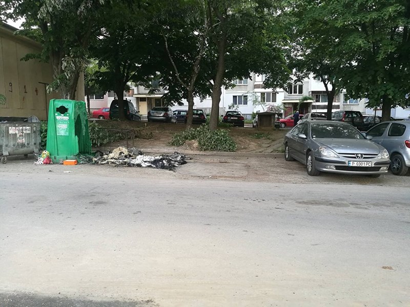 Жители на близкия блок 2 предполагат, че е дело на вандали. Читателка на Dunavmost ни изпрати снимки от мястото на инцидента, на които се виждат опожарения контейнер и купища боклуци, разпилени по пътя.