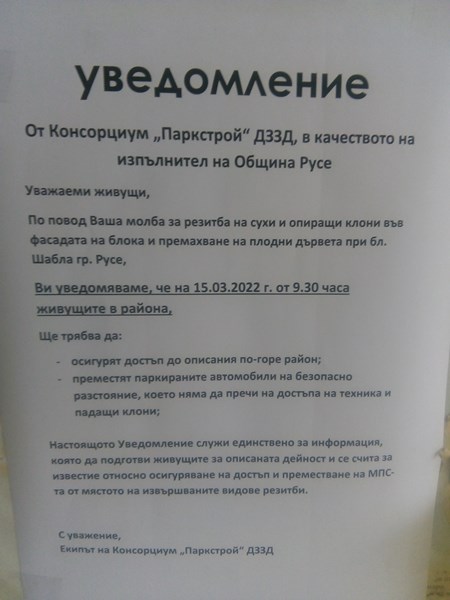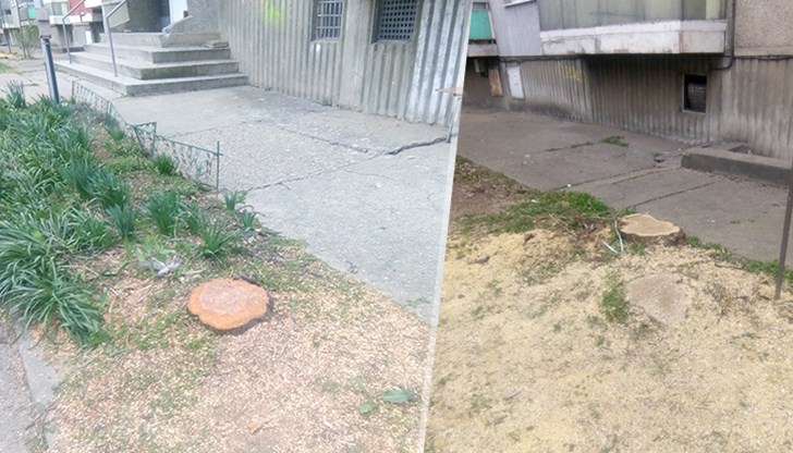 На 15.03 служители на фирма "Паркстрой" са отсекли ШЕСТ здрави дървета пред блок "Шабла" в ж.к. "Възраждане".
