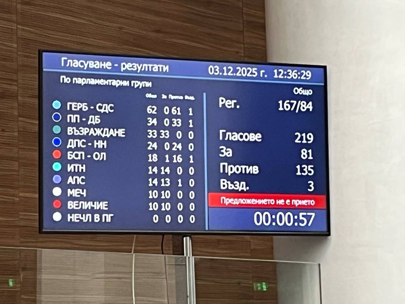 Народното събрание окончателно отхвърли предложението на президента Румен Радев за провеждане на национален референдум с въпрос: "Съгласни ли сте България да приеме единната европейска валута евро през 2026 година?". Решението беше взето след бурни дебати днес, инициирани от парламентарната група на "Възраждане", която използва процедурното си право да включи точката в дневния ред.