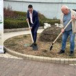 На първата копка присъстваха зам.-кметът Магдалина Илиева, Ивайло Кадишев - директор дирекция "Международни политики, стопански дейности и анализи", екипът по проекта, представители на строителния и проектантския екипи.