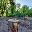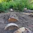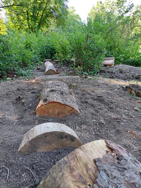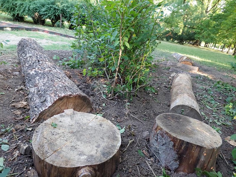 Дървените трупи са обезопасени и вкопани, старите дървета от парка си намериха нова задача - да дават още много години забава на децата.