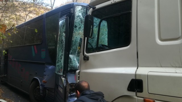 По първоначални данни циментовозът е влязъл в насрещното и е ударил челно автобуса.