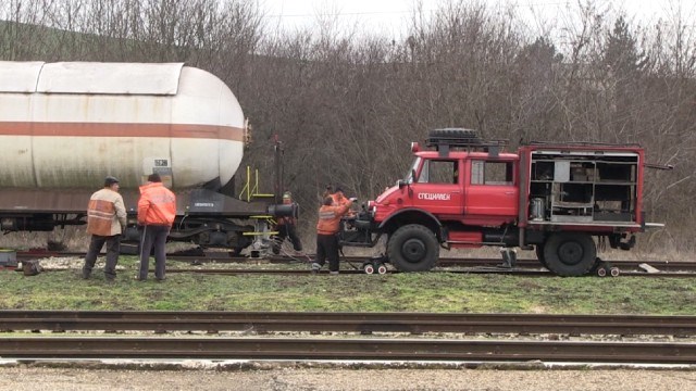 Специализирана машина от Горна Оряховица пристигна на място, за да върне цистерната на релсите. След като бъде разтоварена от горивото, ще бъде проверена за евентуални повреди.