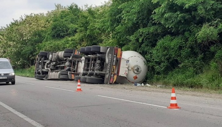Цистерна се преобърна в следобедните часове на пътя Русе - Разград, при Цар Калоян.
