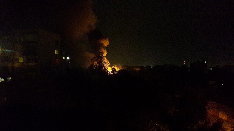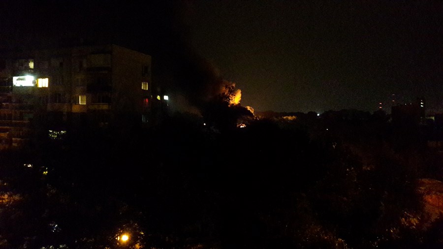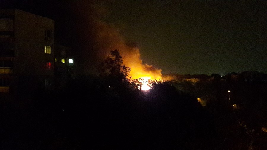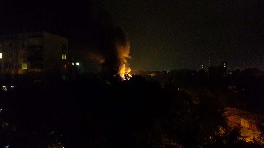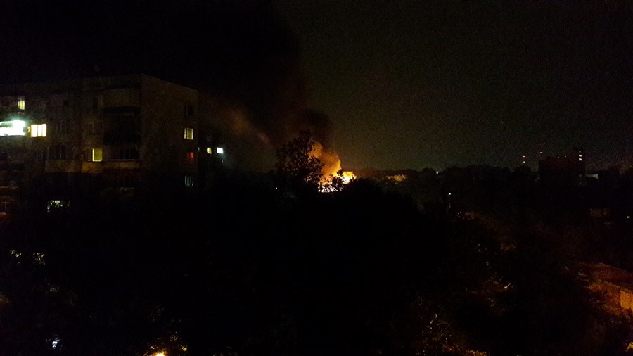 По неофициална информация, пожарът е обхванал складове на куриерска фирма зад хотел "Милениум".