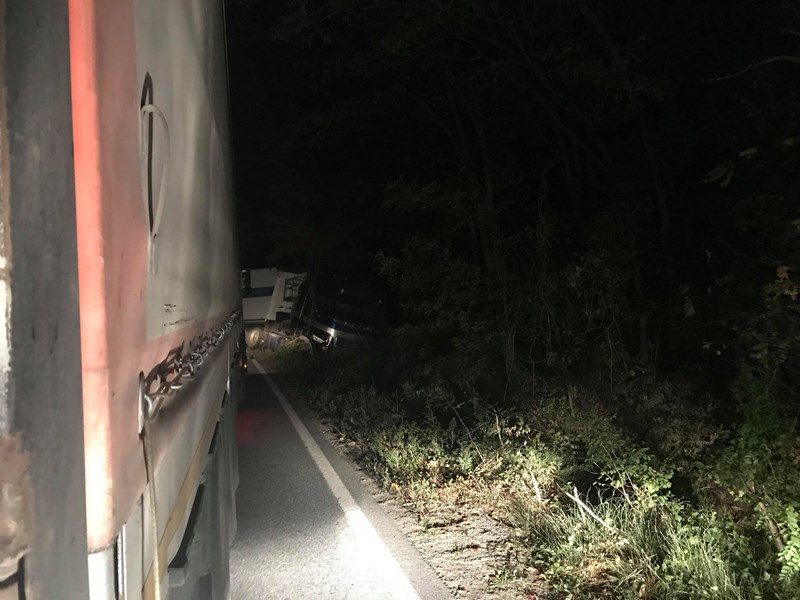 Трафикът в двете посоки е временно ограничен. Пътни полицаи пренасочват леките автомобили през проход Шипка, товарните изчакват на място.