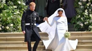 Те са заснети в събота следобед в замъка Уиндзор, малко след като двойката се върна от обиколката с карета след венчавката.