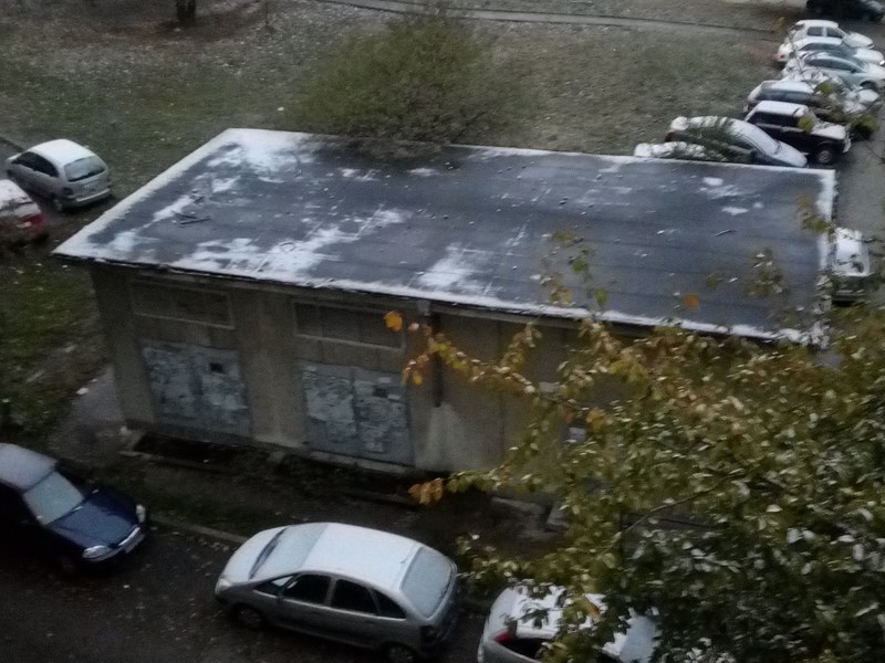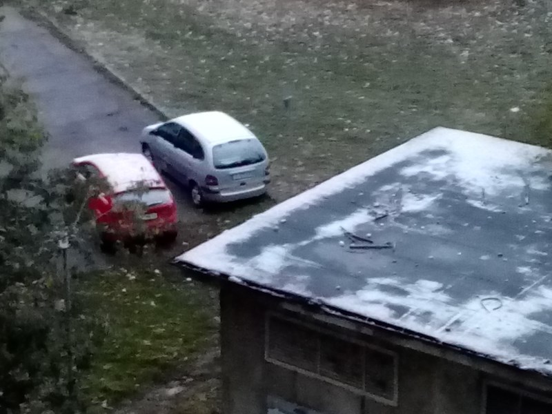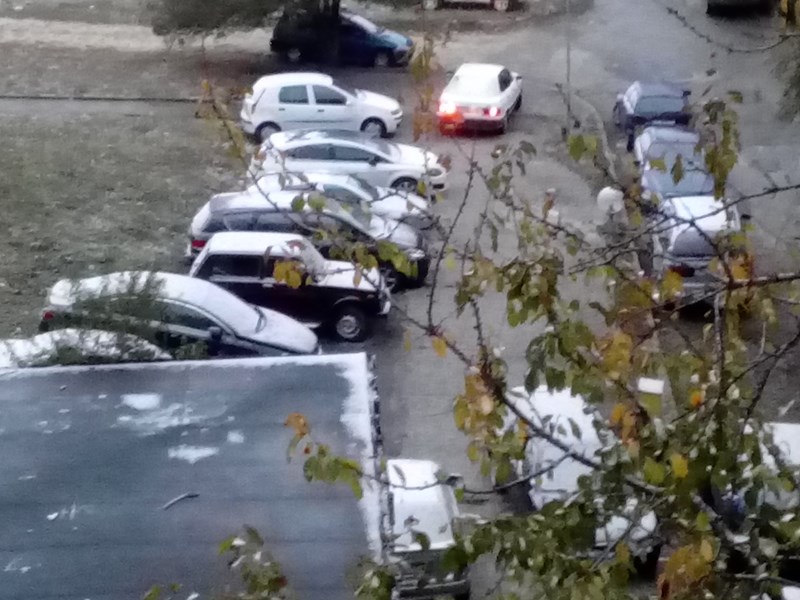 Рано тази сутрин сградите, дърветата и автомобилите бяха побелели.