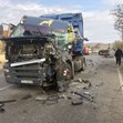 Както по-рано съобщихме, два тежкотоварни автомобила се удариха в центъра на Цар Калоян на главен път Русе - Разград.