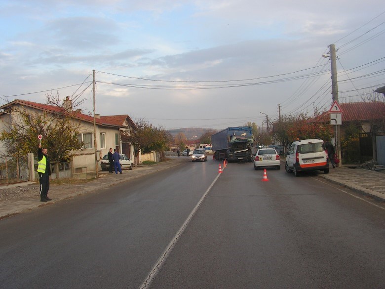 По първоначални данни румънският камион е навлязъл в насрещната лента за движение, а българският, за да избегне удара, е блъснал паркиран пред една от къщите лек автомобил. При пътнотранспортното произшествие са настъпили сериозни материални щети.
