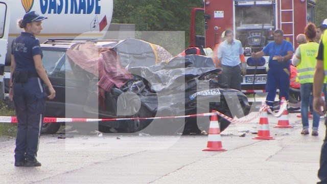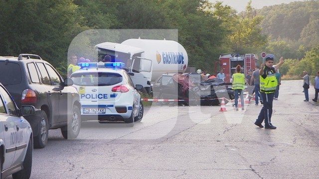 По първоначални данни водачът на лек автомобил „Фолксваген голф“ е изгубил контрол над колата и се ударил челно в цистерна за газ.