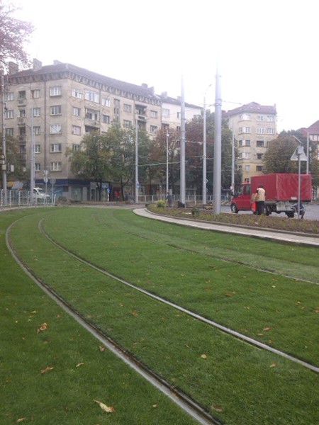 Първите "зелени" релси в София вече са факт. По тях се движат трамваите от ремонтирания участък от Руски паметник. Трафикът през кръстовището за автомобили по план трябва да бъде пуснат на 19 август.