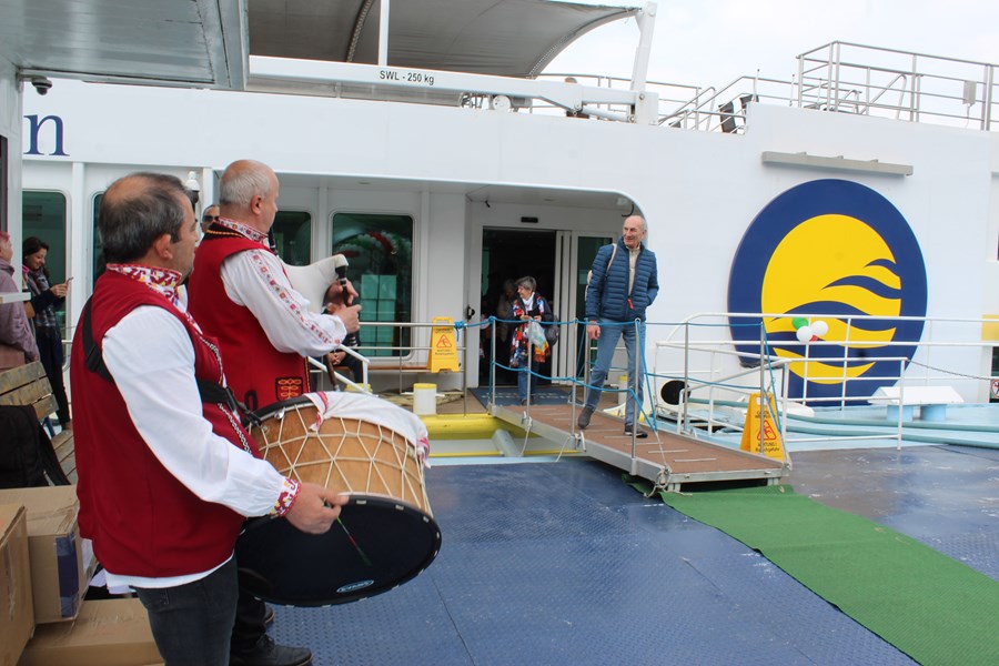 Туристите бяха посрещнати с музика и традиционни български продукти.