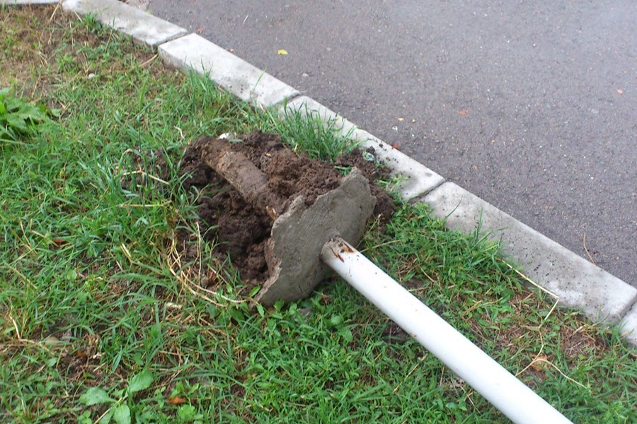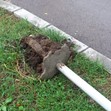 Пътен знак, забит като свещичка