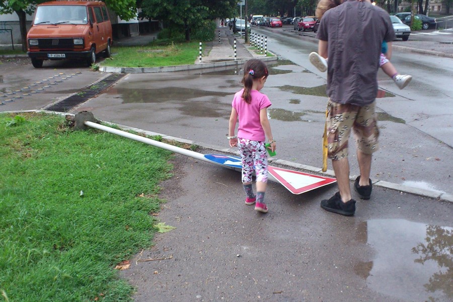 Пред училище "Възраждане" вече няколко седмици...Явно в този далеечен, далеееечен квартал никой от Общината не е стъпвал и си няма и на представа....пресича ли там твоето дете???