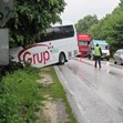 Заради мокрия път автобусът е поднесъл и се е ударил в крайпътно дърво. Пострадал е 52-годишният помощник-шофьор, който е откаран в болница със счупен крак и е настанен в ортопедията. С натъртвания и охлузвания е и една от пътничките, но тя е била прегледана на място от екип на „Спешна помощ“.