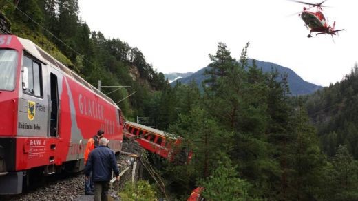 Швейцарски пътнически влак дерайлира заради свлачище в Тифенкасъл, съобщи полицията пред местните медии, описвайки инцидента като "сериозен", пише "Блиц".