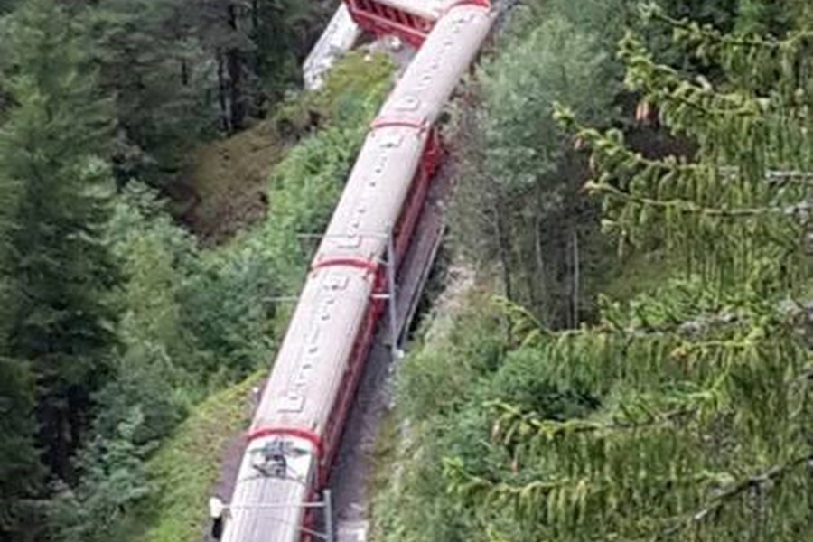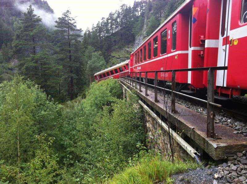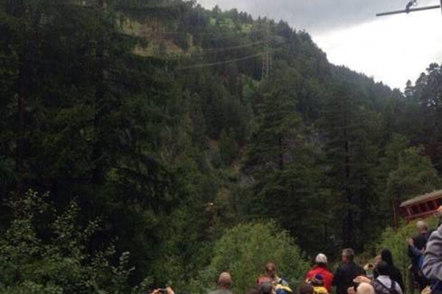 Първите снимки от катастрофата показват два от вагоните, които висят застрашително над пропаст. Дерайлирането на влака се е случило в региона Граубюнден в Източна Швейцария, съобщи швейцарската информационна агенция ATS. ЖП композицията е пътувала за Сейнт Мориц.